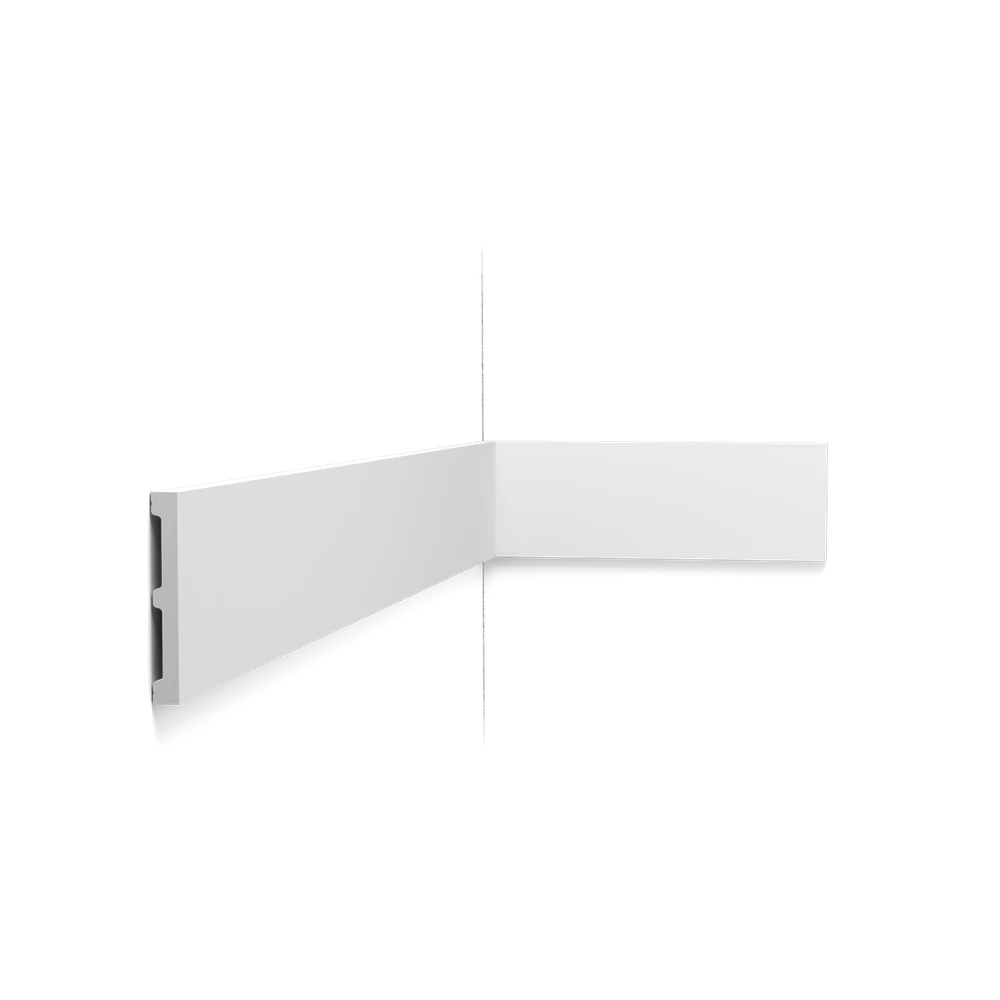 Этот большой простой карниз — часть семейства SQUARE. Вы можете использовать такой плинтус во всем доме, просто выберете подходящий размер.